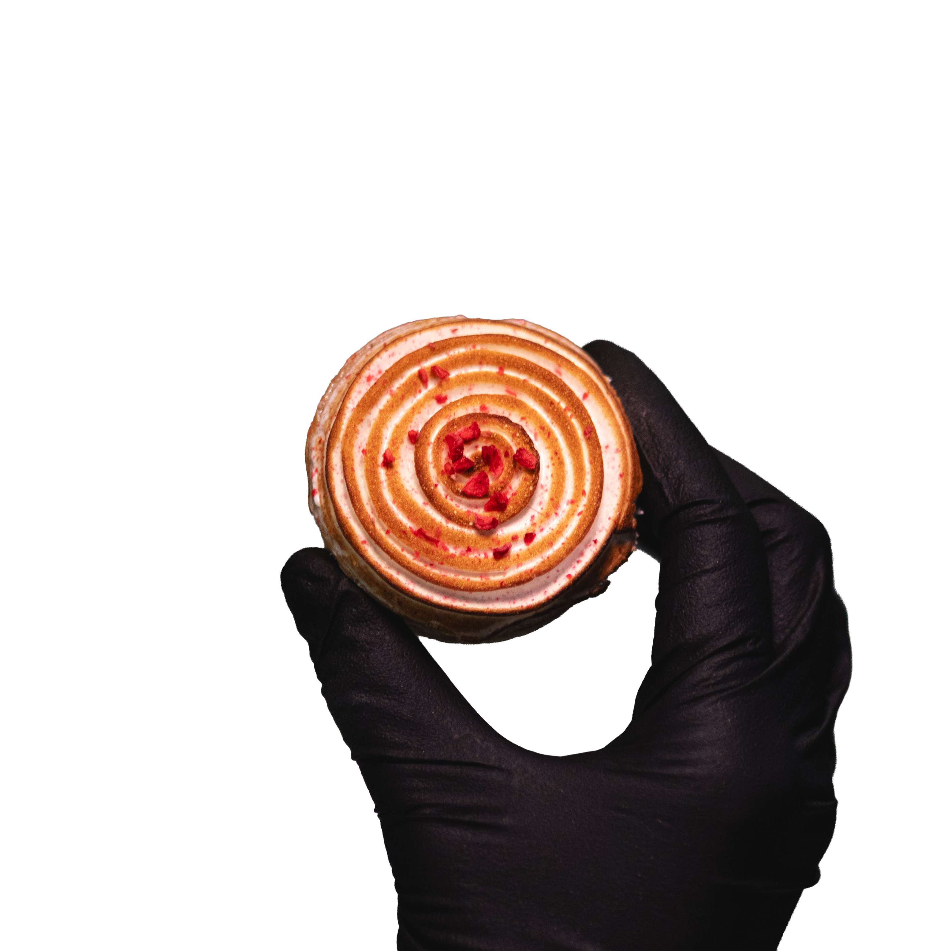 A delicate buttery tart shell layered with vibrant raspberry jam and a silky passion fruit mousse, bringing together bright berry notes and tropical tang. Finished with a pillowy meringue, lightly torched for a soft, toasted finish that adds just the right touch of sweetness to balance the tart center.